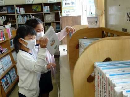 好きな本を選んでいます。