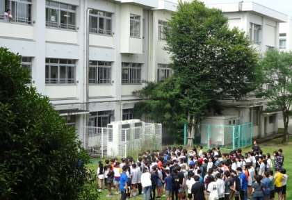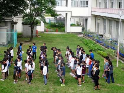 6年生が中庭に集まっています。