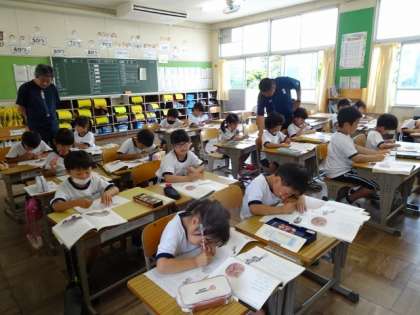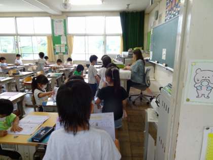 1年生の様子です。担任が不在のため、いつもとは違う先生が対応することもあります。ちょっと新鮮な感覚かな?