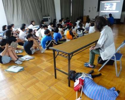 盲導犬のビリー君は、講和の間は一休み。休憩モードでした。
