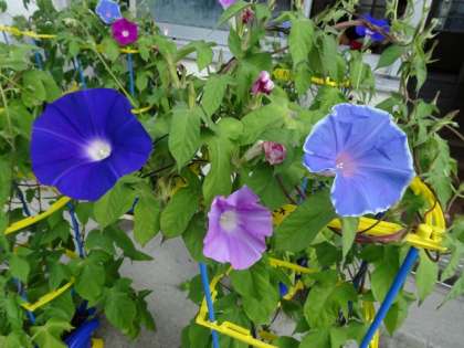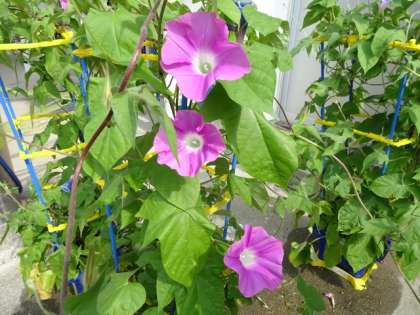 1年生が育てたあさがおも、きれいな花が咲きました。