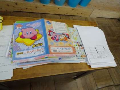 明日の予定を書いたら、連絡帳を前に出します。
