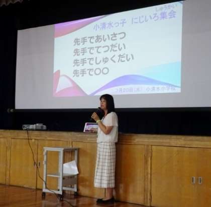 校長からの話の中で、「小清水っ子の呼び方が復活」「小清水っ子の様子を学校ホームページで紹介していること」「夏休みは先手の生活を!」という話をしました。