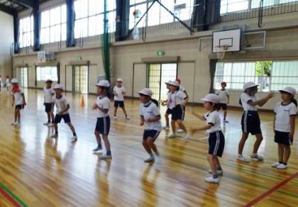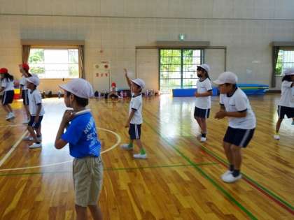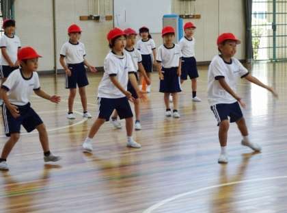 2年生が体育館でドッジボールをしました。