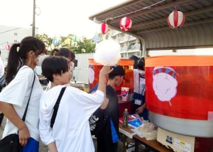 ここでは、なんとポップコーンと綿菓子が欲しい人に配られていました!