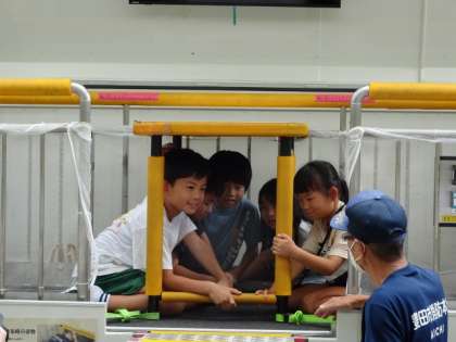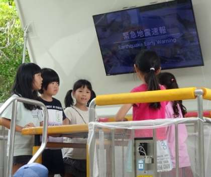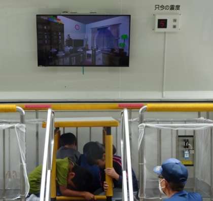 震度6の体験をして、「すごいゆれた」「ジェットコースターみたいだった」など口々につぶやいていました。4年生は、震度7の体験もしたようです。
