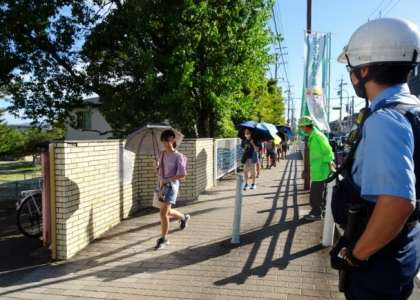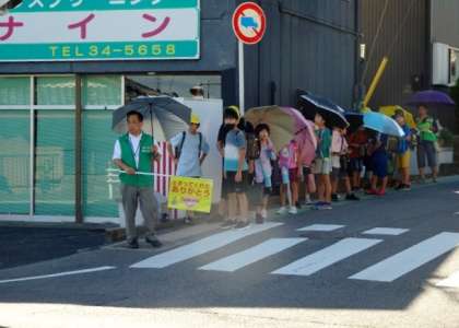 地域の方を始め、たくさんの方に見守られて、今日も元気に登校できました。