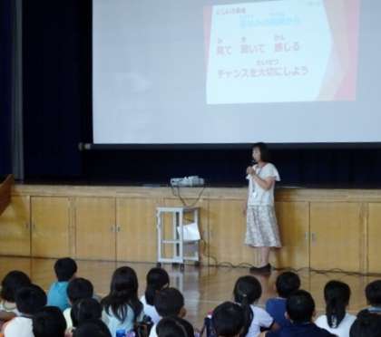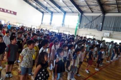 にじいろ集会で、校長から「見て 聴いて 感じたことを大切に」したいと話をしました。夏休み中に、家や親戚のうちや遊びに行った先・旅行先などで経験したすべてのことが、子どもたちの心を豊かにするはずです。