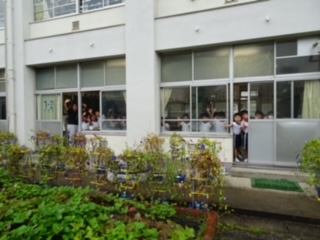 1年生の子にいってらっしゃい!と手を振ってもらい、嬉しそうにバスに向かいました。