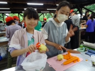 包丁やピーラーも結構上手に使う子もいれば、おっかなびっくりという感じの子も……。いろんな子がいて、いろんなことを感じ取っています。仲良くやっています。