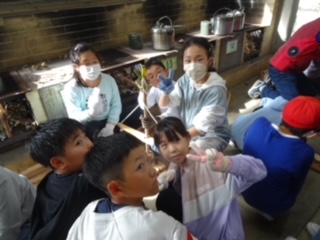 煙が出てきたら、優しく長い息を吹きかけながら、火種が消えないようにします。
