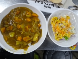 色々な美味しそうなカレーができました。つきあわせのサラダも、けっこう人気でした。野菜が苦手な子も、食べられたようです。