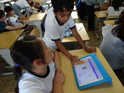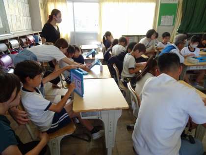 子ども同士教えあう姿が見られるのも、プログラミングの学習の特長です。