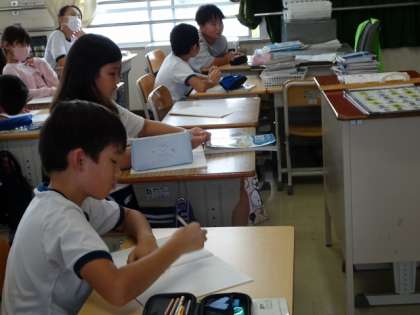 板書を見ながら、頭をフルに働かせて考えています。