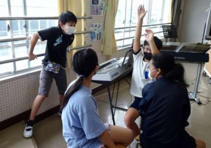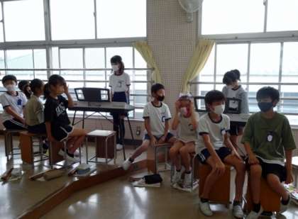 5年生が、音楽の授業で和音の聴き取りにチャレンジしていました。