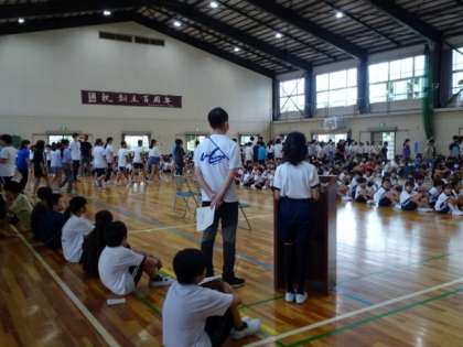 9月22日にじいろ集会 公開日 2023/09/22 更新日 2023/09/22 校長室から 今日は、にじいろ集会です。朝早くから、6年生の子はリハーサルをしていました。「校長先生と朝のあいさつをします」という声が聞こえてきたときに、「校長先生はここにいるよ」と立哨をしている私のそばを通る子がつぶやきました。かわいいつぶやきでした。 校長