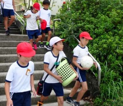 体育の道具を片付けてくれる子達もいました。