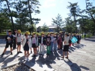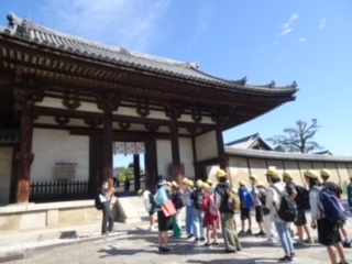 バスを降りて、最初の見学地 法隆寺に向かいました。
