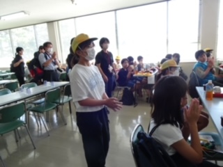 あいさつ係の子が、いただきますと号令をかけました。さあ、食べましょう。
