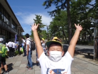 お土産を買った子どもたちは、順にバスに戻って行きます。いいもの、買えたかな?