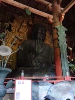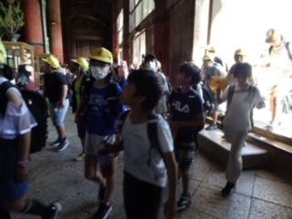 大仏殿に入りました。上を見上げる子どもたち。本物の大きさは、迫力があります。
