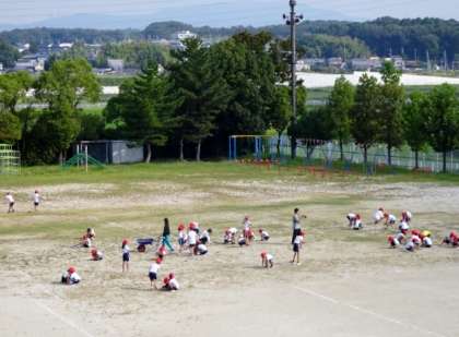ほんとうに、運動場は緑色化しています。子どもたちの手は、小さいけれど、数の多さでなんとか運動場の整備を行いたいと思っています。
