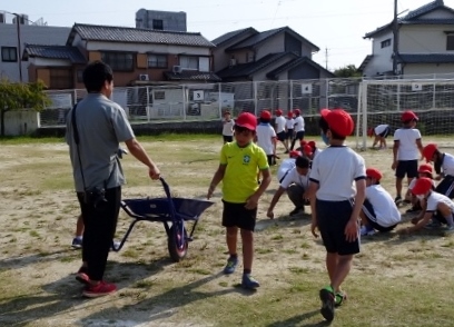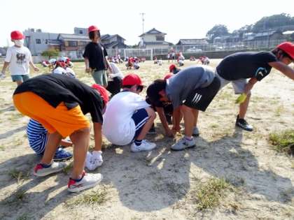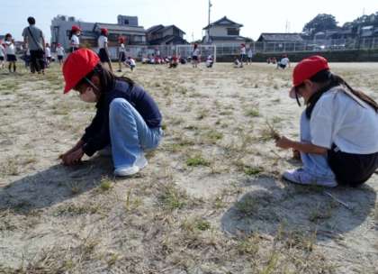子どもたちの草取りの様子から、頑張っている姿を見てください。