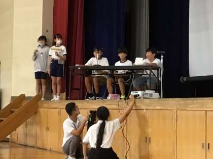 普段、声しか聞いていないので、アナウンス委員の顔を当てるクイズを行っていました。全校でクイズに答えていて、大変盛り上がっていました。