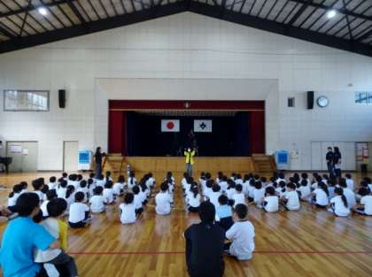 午前中は出張のため様子を見ることがほとんどできませんでしたが、1年生が、まず体育館に集まって撮影でした。