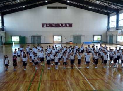 1年生は、みんなで効果を歌い、タイトルコールを担当してくれました。
