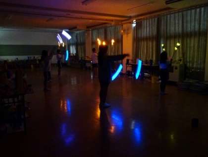 5年生は、キャンプで披露したトーチを見せました。 きれいに放映されると嬉しいですね。