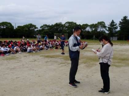 午後の休み時間に緊急地震速報が入った場合の避難訓練を行いました。自分がいた場所から、避難をします。