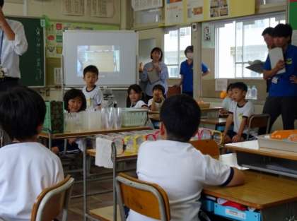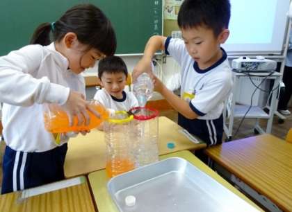 先生が、比べるための入れ物をたくさん用意してくれました。