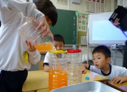 いい顔で、水の量を見ています。