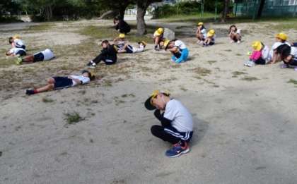 「あと1回できるよ」という先生の声に、みんなもさっとスタートラインへ。