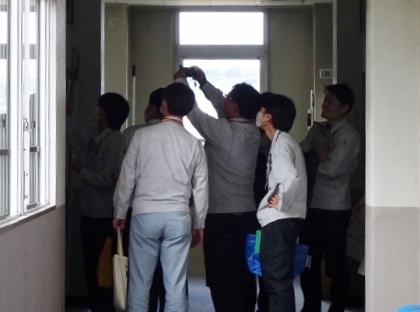 トヨタ自動車の方が帰る途中、廊下で卒業生の写真を見て立ち止まりました。