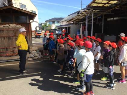 桝塚味噌工場へ1、2組が見学に行きました。本物の味噌蔵やその香りに子ども達は大興奮。興味津々に話を聞いていました。最後には、桝塚味噌の味噌汁をいただきました。子どもたちにとって、記憶に残る見学となりました。