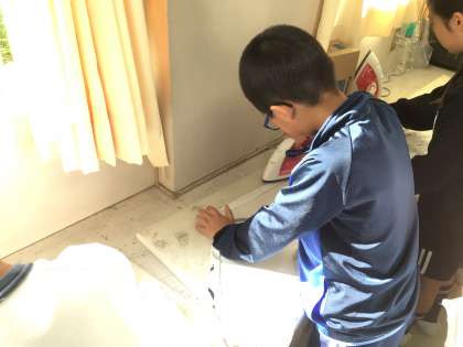 初めて使う、アイロンやミシンの使い方に苦戦しながらも、完成を目指して頑張っています。