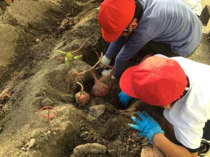 さつまいもを傷つけないように、優しく掘っている姿が印象的でした。