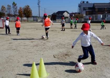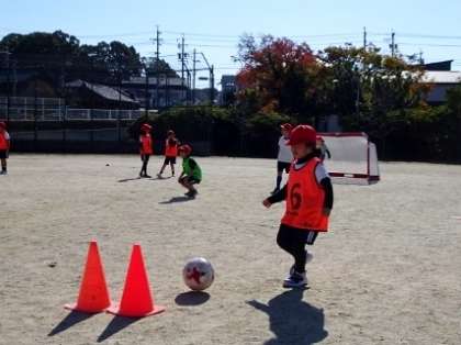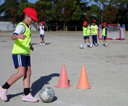 11月1日に、グランパスエイトから講師を招いて、ボールクリニックを行いました。最初は、ボールになれるところからです。