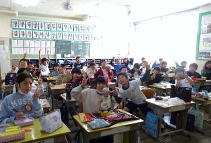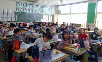 教室をのぞきにいくと、うれしそうに食べている顔がいっぱい。