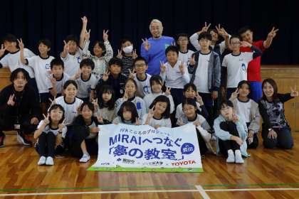 11月8日(水)にJFAの主催する夢の教室がありました。アテネオリンピックの背泳ぎで銅メダルを獲得した森田智己さんが夢先生として来てくださいました。アイスブレイクの運動や、森田さんがメダルを獲得するまでのお話を聞きました。夢をもつことがどんな力につながるのかを教えていただきました。今回の経験を、これから先の自分の夢を叶える糧にしていってほしいです。