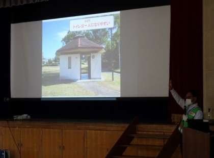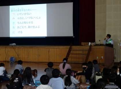地域の危ない場所を写真で見せてくださったり、自分を守るための「つみきおに」の合言葉を教えてくださったりしました。