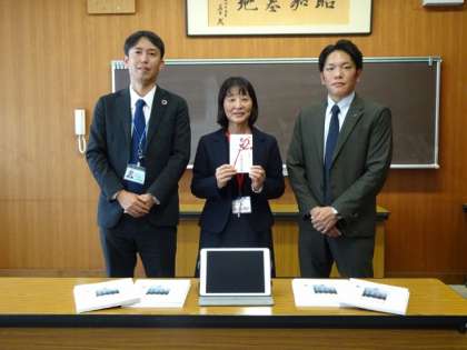 液晶保護フィルムは、子どもたちが安心して学習用タブレットを使うために効果的です。今後、1人1枚配付し、有効に使わせていただきたいと思っています。ありがとうございました。また、保護者の皆様には、子どもたちが持ち帰ったら、学習用タブレットにフィルムを貼っていただくご協力をお願いします。