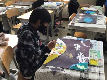 6年生は図工の時間に、読書感想画の学習を進めています。