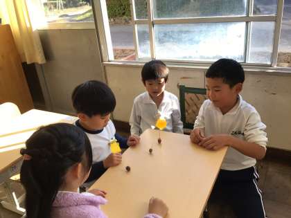 1年生 どんぐりゴマで遊んだよ。