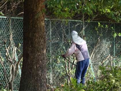 運動場まわりの木が生い茂り、見通しが悪くなっていました。
