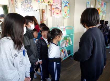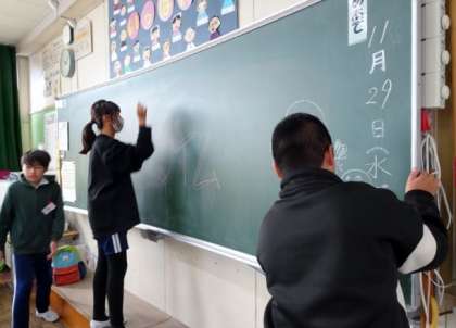 教室の中では、6年生が黒板にわくわくタイムの表示を書いていました。