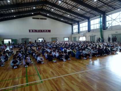 現場とトランシーバーで連絡を取り合い、子どもたちの安全を確保するため、放送で指示を出します。状況が落ち着いたら、放送の指示に従い、体育館に集まりました。そこで人員確認を行いました。