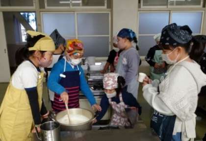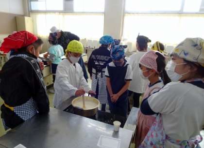 ずいぶん昔、4年生の子と豆腐を作ったことを思い出します。同じように、信濃屋さんに来ていただいたのですが、その頃よりみんなのほうがなめらかでおいしそうだなと感じました。さすがです。